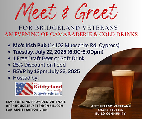 Are you a veteran living in the Bridgeland Community? Whether you’re new to the area or a long-time resident, come connect with fellow veterans in Bridgeland!